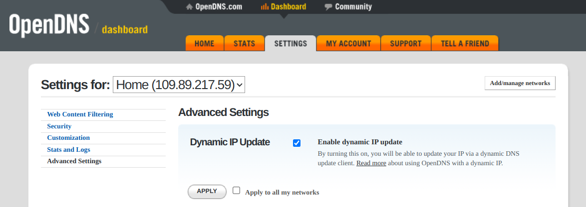 Vous devrez probablement activer la mise à jour dynapique de l’IP et configurer ddclient: